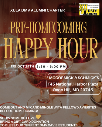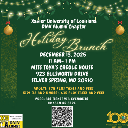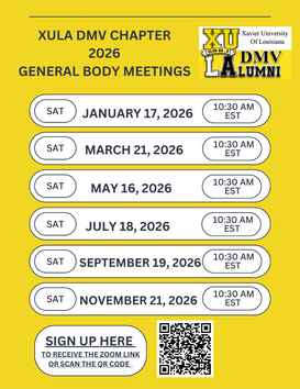 Your connection to Xavier University of Louisiana doesn't end as a student. As alumni, you have access to a network of DMV Xavierites through the DMV Alumni Chapter (Club No. 5). We focus on engagement, networking, and sharing the pride we have for our alma. If you are not a member of the DMV Alumni Chapter, I encourage you to join. Click the link below to take the Membership Survey.
